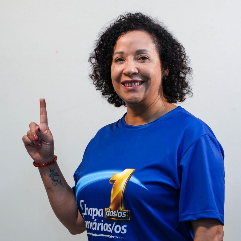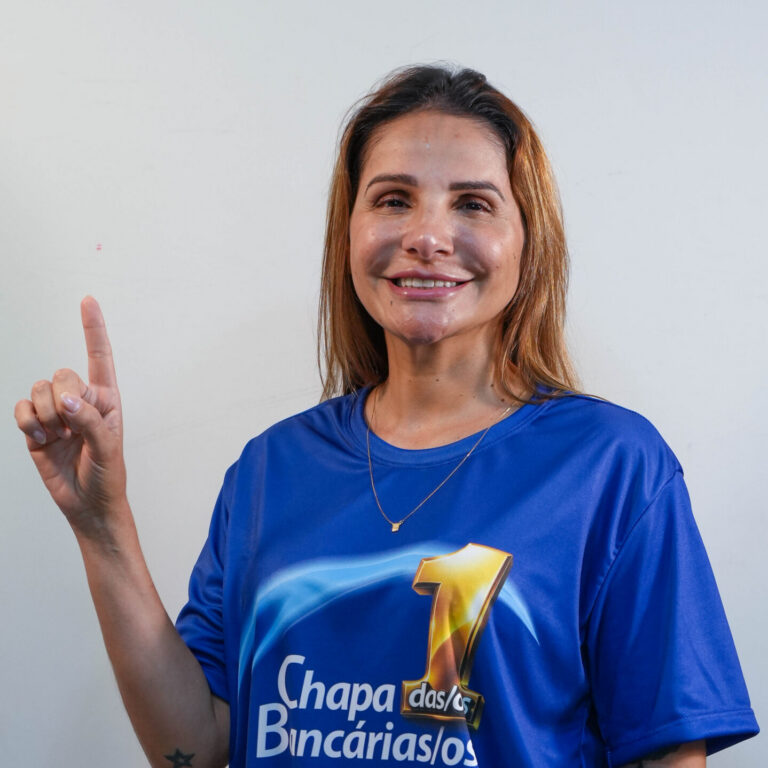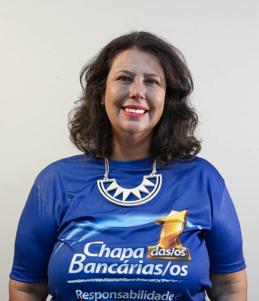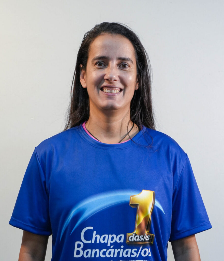 Psicóloga (UniCEUB) e especialista em Psicodinâmica do Trabalho (UnB), une sua trajetória na Caixa à defesa da categoria bancária. É a atual secretária de Saúde e Condições de Trabalho do Sindicato e diretora da CUT-DF, atuando na linha de frente contra modelos de gestão adoecedores. Na Caixa, já passou pelas áreas de logística, gestão de pessoas e relacionamento institucional.